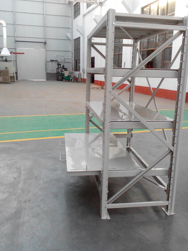 模具貨架,也叫抽屜式貨架:主要用于存放各種模具等物品,因單個(gè)模具的重量較重,存儲起來不是很方便,抽屜式模具架即配有抽屜,又配有天車葫蘆,可以根據(jù)模具的特性來設(shè)計(jì)的貨架存儲。根據(jù)層載能力要求分為輕型模具貨架和模具貨架。整體采用拼裝結(jié)構(gòu),運(yùn)輸方便,組裝簡單、快捷。配有安全保護(hù)裝置。